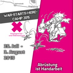 Dieser Mobilmachung wollen wir etwas entgegensetzen, in den Köpfen der Menschen ebenso wie auch ganz praktisch. Abrüstung ist Handarbeit. Wir können nicht auf die Politik vertrauen, sondern müssen die Dinge selbst in die Hand nehmen. Mit vielfältigen Aktionen werden wir die scheinbare Normalität der kriegerischen Verhältnisse offenlegen, stören, blockieren: Spürbare Steine im Getriebe sein.